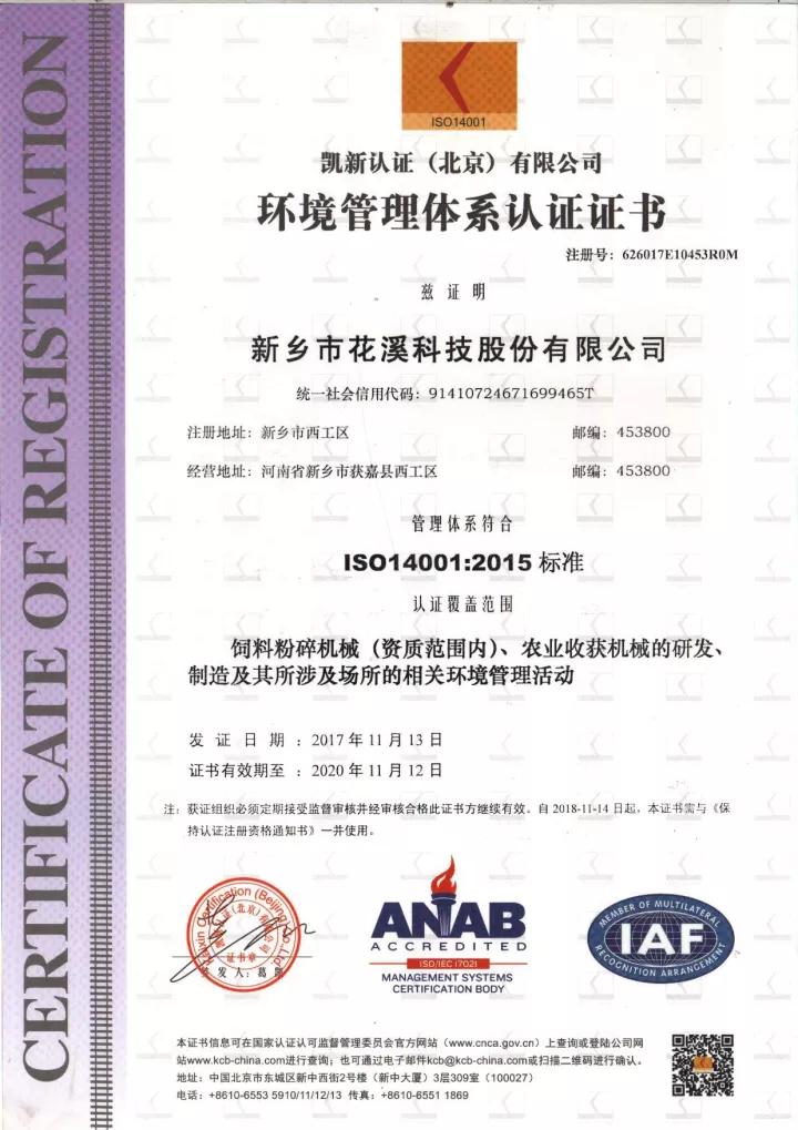 2017年11月13日,花溪公司獲得了環(huán)境管理體系(ISO14001)認(rèn)證證書(shū)和職業(yè)健康安全管理體系(OHSAS18001)認(rèn)證證書(shū)。