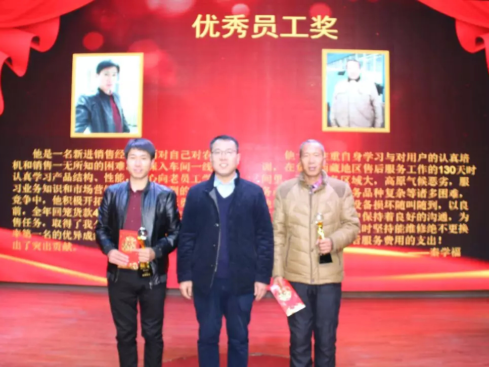 銷(xiāo)售總監(jiān)李方民與2017年度《優(yōu) 秀銷(xiāo)售經(jīng)理》和《優(yōu) 秀售后服務(wù)人員》合影