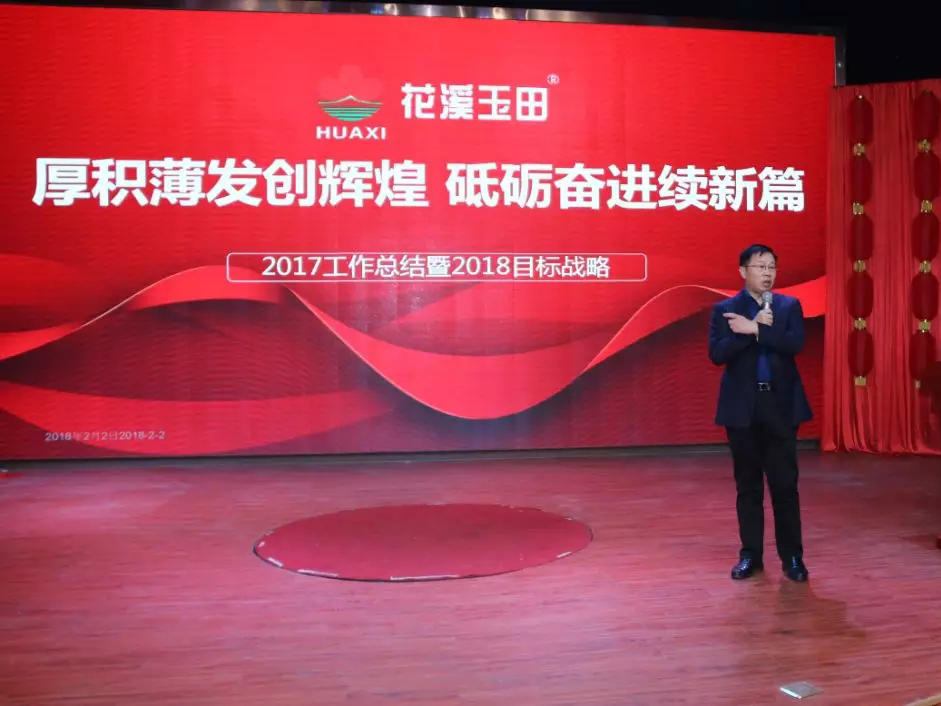 在熱烈的掌聲中,公司總經(jīng)理景建群先生發(fā)表了主題為《厚積薄發(fā)創(chuàng)輝煌,砥礪奮進(jìn)續(xù)新篇》的講話,景總圖文并茂的帶大家回顧2017年的發(fā)展歷程,2017是花溪公司厚積薄發(fā)的一年。一年來(lái)始終堅(jiān)持“匠心打造,提質(zhì)增效”的管理思路,一路拼博,一路耕耘,實(shí)現(xiàn)了年初確定的“九載風(fēng)雨路,十年創(chuàng)輝煌”的宏偉誓言,取得了公司成立以來(lái)的較好佳績(jī),銷(xiāo)售數(shù)量同比增長(zhǎng)119%。